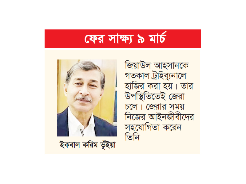এদিকে, গতকাল সকালে কারাগার থেকে জিয়াউল আহসানকে ট্রাইব্যুনালে হাজির করা হয়। তার উপস্থিতিতেই জেরার কার্যক্রম চলে। এমনকি জেরা চলাকালীন কাঠগড়ায় থেকেই নিজের আইনজীবীদের সহযোগিতা করেন তিনি।