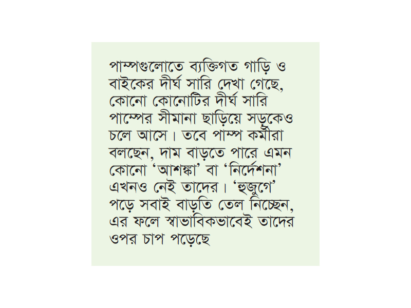 তেলের দাম বৃদ্ধির শঙ্কায় পাম্পগুলোতে হিড়িক