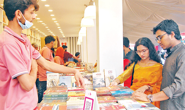 অমর একুশে বইমেলায় গতকাল বিকালে ঘুরতে আসেন অনেক পাঠক-দর্শনার্থী। ছবিটি সোহরাওয়ার্দী উদ্যান থেকে তোলা * আলোকিত বাংলাদেশ