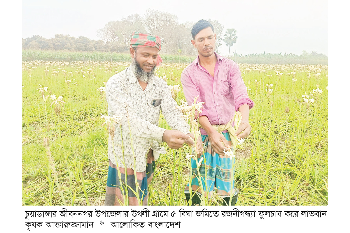জীবননগর উপজেলার উথলী গ্রামে ৫ বিঘা জমিতে বাণিজ্যিকভাবে রজনীগন্ধ্যা ফুলচাষ করে লাভবান হচ্ছেন আক্তারুজ্জামান যুদ্ধ।