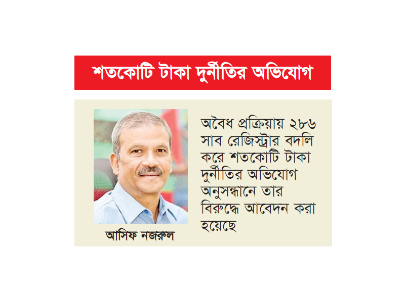 অবৈধ প্রক্রিয়ায় ২৮৬ সাব রেজিস্ট্রার বদলি করে শতকোটি টাকা দুর্নীতির অভিযোগ অনুসন্ধানে অন্তর্বর্তীকালীন সরকারের সাবেক উপদেষ্টা আসিফ নজরুল ও তার পিএস মাসুমের বিরুদ্ধে দুর্নীতি দমন কমিশনে (দুদক) আবেদন করা হয়েছে। গতকাল বুধবার দুদকের কার্যালয়ে সুপ্রিম কোর্টের আইনজীবী ব্যারিস্টার এম সারোয়ার হোসেন এ আবেদন দাখিল করেন। আবেদনে ‘৮ মাসে সাব-রেজিস্ট্রার বদলিতে ঘুষ লেনদেন শতকোটি’ শিরোনামে পত্রিকায় প্রকাশিত প্রতিবেদন সংযুক্ত করা হয়েছে। ওই প্রতিবেদনের প্রথম অংশে বলা হয়, অন্তর্বর্তী সরকারের আমলের আট মাসে আইন মন্ত্রণালয়ে শুধু সাব-রেজিস্ট্রার বদলিতেই ঘুষ লেনদেন হয়েছে শতকোটি টাকা। তৎকালীন আইন উপদেষ্টা আসিফ নজরুলের আমলে সাব-রেজিস্ট্রার বদলির ক্ষেত্রে কোনো ধরনের নীতিমালা মানা হয়নি। ঘুষের বিনিময়ে বদলির ক্ষেত্রে প্রতিশ্রুত টাকা পরিশোধ না করায় বদলির আদেশ স্থগিত করার প্রমাণও পাওয়া গেছে। কোনো কোনো ক্ষেত্রে কাউকে কাউকে ছয়-সাত মাসের মধ্যে তিন-চার বার বদলি করা হয়েছে। আট মাসে (অক্টোবর-২৪ থেকে এপ্রিল-২৫ পর্যন্ত) নিবন্ধন অধিদপ্তরের ৪০৩ জন সাব-রেজিস্ট্রারের মধ্যে কমপক্ষে ২৮২ জনকে বদলি করা হয়েছে। এর মধ্যে অন্তত ২০০ জন ঘুষের মাধ্যমে পছন্দের সাব-রেজিস্ট্রি অফিসে বদলি বাগিয়ে নিয়েছেন। অভিযোগ রয়েছে, জনপ্রতি ৫০ থেকে ৬০ লাখ টাকার বিনিময়ে পছন্দের অফিসে বদলির আদেশ পেয়েছেন তারা। অতীতে কখনও মাত্র আট মাসে এত বিপুলসংখ্যক বদলির ঘটনা ঘটেনি।