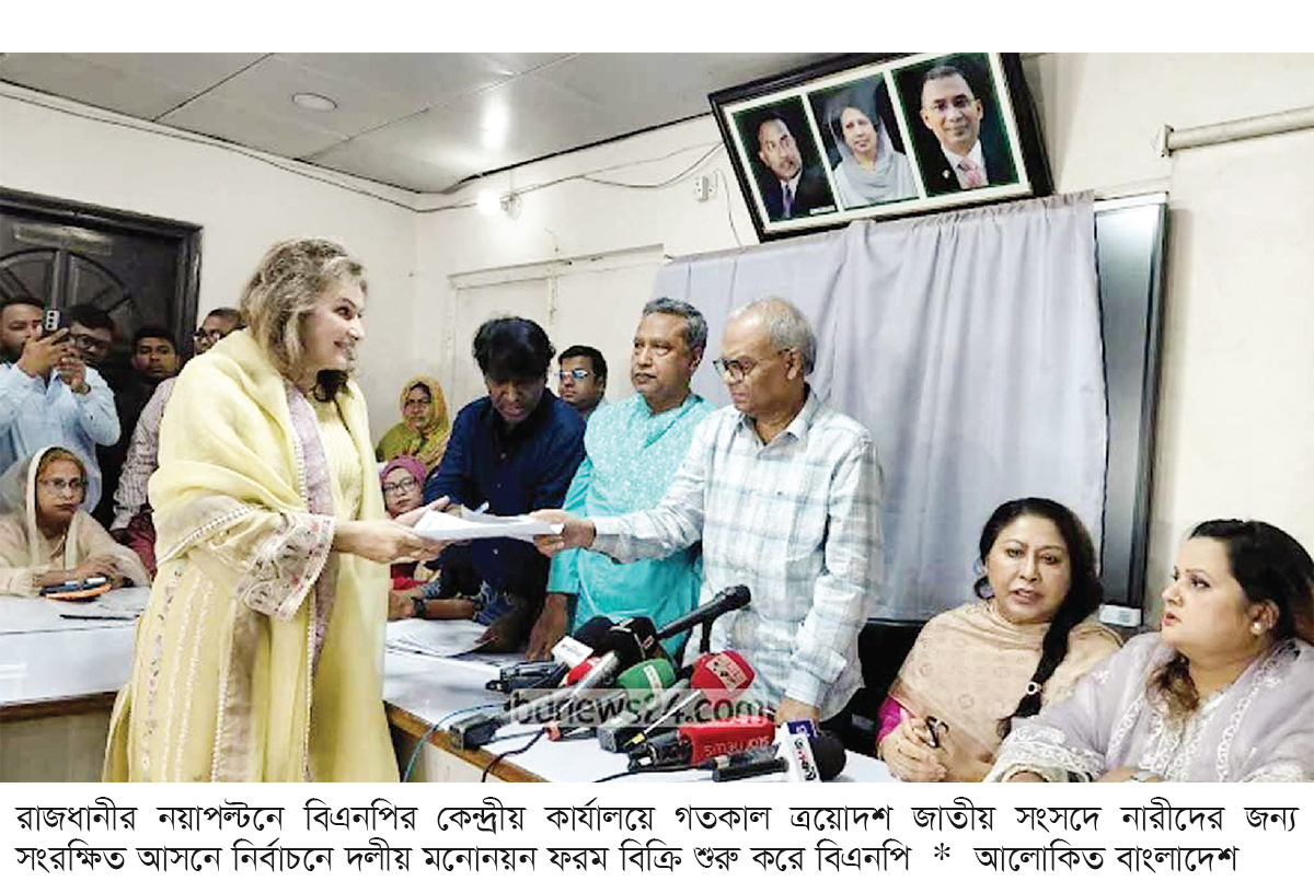 ত্রয়োদশ জাতীয় সংসদের সংরক্ষিত নারী আসনে দলীয় মনোনয়ন ফরম বিক্রি শুরু করেছে বিএনপি। গতকাল শুক্রবার বেলা ১১টায় রাজধানীর নয়াপল্টনে দলের কেন্দ্রীয় কার্যালয়ে মনোনয়ন ফরম বিক্রির কার্যক্রম উদ্বোধন করেন বিএনপির সিনিয়র যুগ্ম মহাসচিব ও প্রধানমন্ত্রীর রাজনৈতিক উপদেষ্টা রুহুল কবির রিজভী।