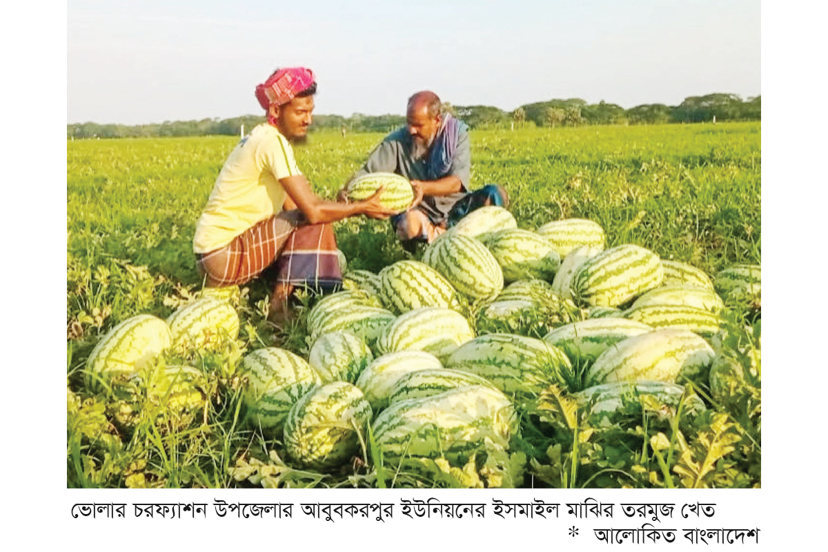 দক্ষিণাঞ্চলের খরা ও লবণাক্ততার সঙ্গে লড়াই করেও চরফ্যাশনের মাঠজুড়ে এখন তরমুজের সমারোহ। সবুজ লতায় ভরপুর মাঠে পাকা তরমুজ যেন এক নতুন সম্ভাবনার বার্তা দিচ্ছে। ভোর থেকেই শুরু হয় তরমুজ সংগ্রহের কাজ। শ্রমিকরা দলবেঁধে মাঠে কাজ করেন- কেউ বাছাই, কেউ পরিবহন কাজে ব্যস্ত।