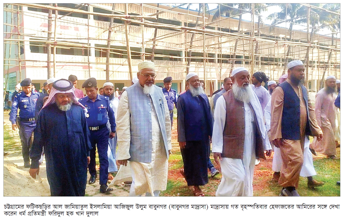 ধর্ম প্রতিমন্ত্রী ফরিদুল হক খান দুলাল বলেছেন, আগামী জাতীয় নির্বাচনে ইসলামী দলের মধ্যে যাদের আপডেট নিবন্ধন আছে তারা অংশ নিতে পারবে, এটি গণতান্ত্রিক অধিকার। যাদের (ইসলামী দল) নিবন্ধন নেই তারা অংশ নিতে পারবে না। গত বৃহস্পতিবার তিনি চট্টগ্রামের ফটিকছড়ির আল জামিয়াতুল ইসলামিয়া আজিজুল উলুম বাবুনগর (বাবুনগর মাদ্রাসা) মাদ্রাসায় মুহতামিমে হেফাজত ইসলাম বাংলাদেশের আমির আল্লামা শাহ মহিবুল্লাহ্ বাবুনগরীর সঙ্গে সাক্ষাৎ শেষে এ কথা বলেন। প্রতিমন্ত্রী বলেন, শিক্ষা কারিকুলামে ধর্মীয় শিক্ষার পরীক্ষা বাধ্যতামূলক করতে হবে। হেফাজত ইসলামের যে দাবি সেটার অনেক আলোচনা আছে। সব আলোচনা শেষে একনেক মিটিংয়ে যাবে। সেটা একদিনে সমাধান হবে না, পর্যায়ক্রেম হবে। বাংলাদেশে ৯০ ভাগ মুসলিম। তিনি বলেন, মাদ্রাসার বড় মাহফিলে আমির আমাকে দাওয়াত দিয়েছিলেন। তখন আমি হজ কার্যক্রমের কারণে সৌদিআরবে থাকব। তাই আগেই হুজুরের সঙ্গে দেখা করে দোয়া নিয়েছি। এটা আমার কর্তব্য ধর্ম মন্ত্রণালয়ের প্রতিমন্ত্রী হিসেবে।