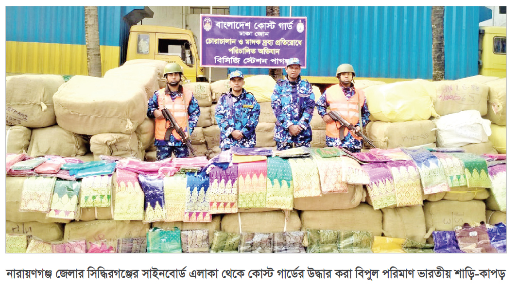 সিদ্ধিরগঞ্জে বিপুল পরিমাণ ভারতীয় শাড়ি উদ্ধার : আটক এক