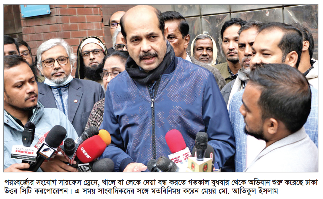পয়ঃবর্জ্যরে সংযোগ সারফেস ড্রেনে, খালে বা লেকে দেয়া বন্ধ করতে গতকাল বুধবার থেকে অভিযান শুরু করেছে ঢাকা উত্তর সিটি করপোরেশন (ডিএনসিসি)। অভিযানের অংশ হিসেবে গুলশান-২ এ ডিএনসিসির মেয়র মো. আতিকুল ইসলাম নিজে উপস্থিত থেকে সারফেস ড্রেন থেকে দুটি বাড়ির পয়ঃবর্জ্যরে সংযোগ বন্ধ করে দেন। গতকাল দুপুরে গুলশান-২ এর ১০৪ ও ১১২ নম্বর রোডের দুটি বাড়ির সামনে ড্রেনে কলাগাছ দিয়ে সারফেস ড্রেন থেকে পয়ঃবর্জ্যরে সংযোগ বন্ধ করে দেয়া হয়। এ সময় সাংবাদিকদের সঙ্গে মতবিনিময়কালে মেয়র বলেন, ‘পয়ঃবর্জ্যরে সংযোগ সারফেস ড্রেনে, খালে বা লেকে দেয়া বন্ধ করতে আজ থেকে আমরা এই অভিযান শুরু করেছি। আমাদের অভিযান অব্যাহত থাকবে। এরইমধ্যে আমরা এই তালিকা প্রণয়ন করে ফেলেছি। সারফেস ড্রেনে ও খালে পয়ঃবর্জ্যরে সংযোগ পেলে বিন্দুমাত্র ছাড় দেয়া হবে না। কোনোভাবেই ব্ল্যাক ওয়াটার সিটি করপোরেশনের ড্রেনে, খালে, লেকে ঢুকতে পারবে না।’ মেয়র আরও বলেন, কোনোভাবেই পয়ঃবর্জ্যরে সংযোগ সারফেস ড্রেনে দেয়া যাবে না। এই বিষয়ে আমরা অনেক আগে থেকেই বার বার সচেতন করে আসছি। গণবিজ্ঞপ্তিও দিয়েছি। সোসাইটির প্রতিনিধিদের নিয়ে সভা করে আমরা জানিয়েছি, যেন পয়ঃবর্জ্যরে লাইন সারফেস ড্রেনে না দেয়া হয়। বার বার বলার পরও কেউ কর্ণপাত করছে না। এ সময় তিনি বলেন, আমরা গুলশান, বনানী, বারিধারা ও নিকেতন এলাকায় সরজমিনে সার্ভে করেছি। সার্ভেতে পেয়েছি প্রায় ৮৫ শতাংশ বাড়িতেই পয়ঃবর্জ্যরে লাইন সারফেস ড্রেনে দিয়ে রেখেছে। এমনকি অনেকে চোরাই পথে সারফেস ড্রেনে পয়ঃবর্জ্যরে লাইন দিয়েছে। অভিজাত এলাকায়ই এত সমস্যা এটি এলার্মিং। এতে খাল ও লেকের পানি দূষিত হচ্ছে। এটা অত্যন্ত দুঃখের বিষয়। আমি কলাগাছ দিয়ে ড্রেনের সংযোগ বন্ধ করে দিচ্ছি। ফলে ময়লা ব্যাক ফ্লো করবে। এখন বাড়ির মালিকরা সচেতন হতে বাধ্য।