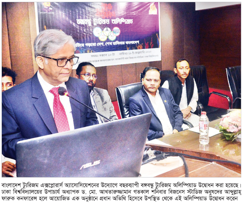 বাংলাদেশ ট্যুরিজম এক্সপ্লোরার্স অ্যাসোসিয়েশনের (বিটিইএ) উদ্যোগে বছরব্যাপী বঙ্গবন্ধু ট্যুরিজম অলিম্পিয়াড উদ্বোধন করা হয়েছে। ঢাকা বিশ্ববিদ্যালয়ের উপাচার্য অধ্যাপক ড. মো. আখতারুজ্জামান গতকাল শনিবার বিজনেস স্টাডিজ অনুষদের আব্দুল্লাহ্ ফারুক কনফারেন্স হলে আয়োজিত এক অনুষ্ঠানে প্রধান অতিথি হিসেবে উপস্থিত থেকে এই অলিম্পিয়াড উদ্বোধন করেন।