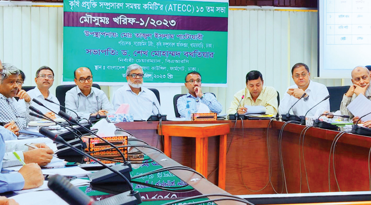 কৃষি প্রযুক্তি সম্প্রসারণ কমিটি (এটিইসিসি) খরিফ-১/২০২৩ মৌসুমের ১৩তম সভা গতকাল রোববার রাজধানীর বাংলাদেশ কৃষি গবেষণা কাউন্সিলের (বিএআরসি) কনফারেন্স রুমে অনুষ্ঠিত হয়। সভায় সভাপতিত্ব করেন বিএআরসির নির্বাহী চেয়ারম্যান ড. শেখ মোহাম্মদ বখতিয়ার। সভায় কৃষি মন্ত্রণালয়ের অতিরিক্ত সচিব রবীন্দ্র শ্রী বড়ুয়া, ডিএইর মহাপরিচালক বাদল চন্দ্র বিশ্বাসসহ অন্যান্য সংস্থা প্রধানরা উপস্থিত ছিলেন।