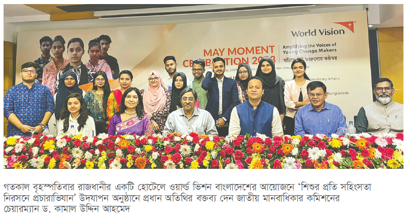 “বাল্য বিবাহের ছোবলে পড়ে নারীর ভবিষ্যৎ নষ্ট হয়ে যাচ্ছে। বাল্যবিয়ের কারণ নিয়ে অনেক গবেষণা হয়েছে। একটি গবেষণায় এসেছে, অর্থনৈতিক দুর্দশার কারণে ১৮.৯৯ ভাগ, সামাজিক নিরাপত্তাহীনতার কারণে ২৫.৪৬ ভাগ বাল্যবিয়ে হয়। এছাড়াও কম বয়সে বিয়ে দিলে যৌতুকের পরিমাণ কম দিতে হয় বলে মনে করে বাবা-মা। আমি মনে করি, বাল্যবিয়ে প্রতিরোধে স্থানীয় নেতা ও ধর্মীয় নেতাদেরকে বেশি করে সম্পৃক্ত করা জরুরি। এছাড়াও, বাল্য বিয়ে নিরোধ আইনের ১৯ ধারায় যে বিশেষ বিধান রাখা হয়েছে তা সুনির্দিষ্ট না হয়ে পরিধির ব্যাপকতার কারণে বাল্যবিয়ে নিয়ন্ত্রণ করার চেয়ে প্রশ্রয় দেয়ার মতো। তাই জাতীয় মানবাধিকার কমিশন আইনের এই ধারা সংস্কারের জন্য সরকারের কাছে সুপারিশ করবে।” গতকাল বেলা ১১টায় রাজধানীর একটি হোটেলে ওয়ার্ল্ড ভিশন বাংলাদেশের আয়োজনে ‘শিশুর প্রতি সহিংসতা নিরসনে প্রচারাভিযান’ উদযাপন অনুষ্ঠানে প্রধান অতিথির বক্তব্যে এসব কথা বলেন জাতীয় মানবাধিকার কমিশন চেয়ারম্যান ড. কামাল উদ্দিন আহমেদ। বিশেষ অতিথির বক্তব্যে শিক্ষা মন্ত্রণালয়ের উপমন্ত্রী মহিবুল হাসান চৌধুরী এম.পি. বলেন, বাল্যবিবাহের কারণে অন্যান্য আর্থ-সামাজিক প্রতিবান্ধকতা যেমন মাতৃমৃত্যু, শিক্ষাপ্রতিষ্ঠান থেকে মেয়েদের ঝরে পড়া ইত্যাদি দেখা যায়। সেজন্য বাংলাদেশ সরকার মেয়ে শিশুদের বিদ্যালয় থেকে ঝরে পড়া রোধ করার জন্য শিক্ষা উপবৃত্তি চালু করেছে, এর ফলে এসএসসি পরীক্ষার্থীদের মধ্যে মেয়ের সংখ্যা ছেলেদের চেয়ে ১০ শতাংশ বেড়েছে। বাল্যবিবাহ রোধে ধর্মীয় ও রাজনৈতিক নেতাদের সচেতন করা বেশি জরুরি বলে তিনি মত প্রকাশ করেন। অনুষ্ঠানে ওয়ার্ল্ড ভিশন পরিচালিত খরংঃবহরহম ঃড় ইৎরফবং শীর্ষক গবেষণা প্রতিবেদন উপস্থাপনা করা হয়। এতে আরও বক্তব্য রাখেন ওয়ার্ল্ড ভিশনের ন্যাশনাল ডিরেক্টর সুরেশ বারলেট, চন্দন গোমেজ, সিনিয়র ডিরেক্টর অপারেশনস, ওয়ার্ল্ড ভিশন বাংলাদেশ এবং নিশাত সুলতানা, উপ-পরিচালক, ওয়ার্ল্ড ভিশন বাংলাদেশ। জাতীয় মানবাধিকার কমিশনের এক সংবাদ বিজ্ঞপ্তিতে এ তথ্য জানানো হয়।