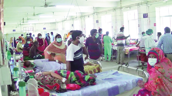 বাকিরা রাজধানী ঢাকাসহ বিভিন্ন জেলায় গিয়ে আক্রান্ত হন। মোট ভর্তি রোগীর মধ্যে সুস্থ হয়ে বাড়ি ফিরে গেছেন ৩ হাজার ১৯৯ জন। সর্বশেষ ২৪ ঘণ্টায় মারা গেছেন দুজন। হাসপাতাল সূত্র জানিয়েছে, শুধু ডেঙ্গু রোগী নয়, আবহাওয়া পরিবর্তনজনিত শারীরিক জটিলতা নিয়ে ভর্তি হওয়া রোগীর সংখ্যাও উদ্বেগজনক হারে বেড়েছে। যেখানে স্বাভাবিক সময়ে কলেরা রোগীর সংখ্যা থাকে ৩৫০ থেকে ৪০০ জন, সেখানে এ সময়ে ১ হাজার ৭৯৩ রোগী ভর্তি আছেন। অর্থাৎ অন্য সময়ের তুলনায় প্রায় ৫ গুণ বেশি। আর ডায়রিয়া রোগী ভর্তি আছেন ১ হাজার ৭২১ জন। এটা গত ২০ অক্টোবর পর্যন্ত রোগীর সংখ্যা। তথ্যমতে, ওয়ার্ডে রোগীর প্রাথমিক বিবরণ শুনে প্রয়োজনীয় ওষুধ, স্যালাইন ও ইনজেকশন দেওয়ার পরামর্শ দেন চিকিৎসকরা। কিন্তু ওয়ার্ডে নার্স সংখ্যা খুবই কম হওয়ায় রোগী ভর্তি পর চিকিৎসা শুরু হতে ঘণ্টাখানেক অপেক্ষা করতে হয়। সেক্ষেত্রে সিনিয়র স্টাফ নার্সদের সহযোগিতা করেন ইন্টার্ন নার্সরা। এতে তারাও হাতেকলমে শেখার সুযোগ পান। কিন্তু রহস্যজনক কারণে হাসপাতালটিতে বেসরকারি নার্সিং কলেজের বিএসসি-ইন-নার্সিং কোর্সের শিক্ষার্থীদের প্র্যাকটিস বন্ধ রাখা হয়েছে। রোগীর স্বজনরা জানান, ওয়ার্ডে পর্যাপ্ত সেবা পাওয়া যায় না। নার্স সংখ্যা রোগীর তুলনায় অনেক কম। এতে নার্সরা চাপে পড়েন, তারাও সেবা থেকে বঞ্চিত হন। সঠিক সময়ে ওষুধপত্র না পেয়ে অনেকের অবস্থা শঙ্কটাপন্ন হয়ে যায়। প্রাণ বাঁচাতে হাসপাতালের নিবিড় পরিচর্যা কেন্দ্রে (আইসিইউ) নিতে হয়। সেখানে পাওয়া যায় না শয্যা। চেয়ে চেয়ে স্বজনের মৃত্যু দেখা ছাড়া উপায় থাকে না তাদের। যে কারণে ইন্টার্ন নার্স সংখ্যা বৃদ্ধি করা অতীব জরুরি বলে মনে করছেন তারা। তবে এসব রোগ প্রতিরোধে সবাইকে এখন থেকেই সতর্ক থাকার তাগিদ বিশেষজ্ঞদের।
