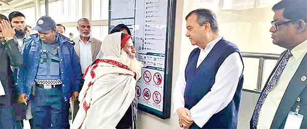পরিবেশবান্ধব গণপরিবহন ব্যবহারের জন্য জনসাধারণের প্রতি আহ্বান জানিয়েছেন পরিবেশ, বন ও জলবায়ু পরিবর্তনমন্ত্রী সাবের হোসেন চৌধুরী। গতকাল সোমবার বেলা সাড়ে ১১টায় সচিবালয় মেট্রো স্টেশন থেকে মেট্রোতে চড়ে আগারগাঁও স্টেশনে যাওয়ার সময় তিনি এ আহ্বান জানান। মেট্রোরেলে ভ্রমণকালে পরিবেশমন্ত্রী যাত্রীদের বলেন, পরিবেশ সংরক্ষণে জনসাধারণের অংশগ্রহণ অপরিহার্য। পরিবহন মালিকরা পরিবেশবান্ধব পরিবহন পরিচালনা করলে এবং জনসাধারণ পরিবেশবান্ধব যানবাহন ব্যবহার করলে বায়ুদূষণ পরিস্থিতির উন্নতি হবে। এসময় তিনি আগারগাঁও মেট্রো স্টেশন থেকে নেমে পরিবেশ অধিদপ্তর পরিদর্শন শেষে অধিদপ্তরের মহাপরিচালক আবদুল হামিদসহ সদর দপ্তর ও মাঠ পর্যায়ের সব কর্মকর্তাদের সঙ্গে মতবিনিময় করেন। এসময় তিনি পরিবেশ সংরক্ষণে কার্যকর পদক্ষেপ গ্রহণের এবং জনগণকে ঝামেলা ছাড়া সেবা দেওয়ার জন্য কর্মকর্তদের প্রতি নির্দেশ দেন। এ সময় অন্যদের মধ্যে পরিবেশ, বন ও জলবায়ু পরিবর্তন মন্ত্রণালয়ের সচিব ফারহিনা আহমেদ, অতিরিক্ত সচিব (প্রশাসন) ইকবাল আব্দুল্লাহ হারুন, অতিরিক্ত সচিব (পরিবেশ) সঞ্জয় কুমার ভৌমিক, অতিরিক্ত সচিব (উন্নয়ন) ফাহমিদা খানমসহ মন্ত্রণালয়ের ঊর্ধ্বতন কর্মকর্তারা উপস্থিত ছিলেন।