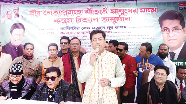 ঢাকা দক্ষিণ সিটি কর্পোরেশনের (ডিএসসিসি) মেয়র ব্যারিস্টার শেখ ফজলে নূর তাপস বলেছেন, সাধারণ মানুষ যেন ন্যায্য মূল্যে খাদ্যসামগ্রী পায়, তাদের যেন কোনো ভোগান্তি না হয় সেজন্য প্রধানমন্ত্রী ১ কোটি টিসিবি কার্ড প্রদান করেছেন। এর মধ্যে ডিএসসিসির মাধ্যমে ৭ লাখ কার্ড বিতরণ করা হয়েছে। গতকাল বুধবার ঢাকা দক্ষিণ সিটি কর্পোরেশনের ১৬ ও ১৭ নম্বর ওয়ার্ডের শীতার্ত বাসিন্দাদের মাঝে কম্বল বিতরণ অনুষ্ঠানে তিনি এ কথা বলেন। মেয়র তাপস বলেন, যখন সারা বিশ্বে দ্রব্যমূল্যের ঊর্ধ্বগতি তখন শেখ হাসিনা সাধারণ মানুষের কথা চিন্তা করেছেন। সাধারণ মানুষ যাতে ন্যায্য মূল্যে খাদ্যসামগ্রী পায়, তাদের যাতে কোনো ভোগান্তি না হয়, সেজন্য তিনি ১ কোটি টিসিবি কার্ড প্রদান করেছেন। টিসিবি কার্ডের মাধ্যমে শুধু নিম্ন আয়ের মানুষই নয়, মধ্যম আয়ের জনগোষ্ঠীও ন্যায্য মূল্যে খাদ্যসামগ্রী পাচ্ছেন। এর মধ্যে ঢাকা দক্ষিণ সিটি কর্পোরেশনের মাধ্যমে আমরা ঢাকায় প্রায় ৭ লাখ কার্ড প্রদান করেছি। ডিএসসিসি মেয়র বলেন, প্রধানমন্ত্রী শেখ হাসিনা মায়ের মমতা দিয়ে বাংলাদেশকে আলিঙ্গন করে রেখেছেন। তিনি বুঝেন কার কি কষ্ট, কার কি বেদনা। তিনি সর্বাত্মকভাবে সেটা উপলব্ধি করেন বলেই সবসময় সাধারণ মানুষের পাশে থেকে জনকল্যাণে নিজেকে নিবেদিত করেছেন। এদিন ডিএসসিসির ১৬ নম্বর ওয়ার্ডে ২ হাজার এবং ১৭ নম্বর ওয়ার্ডে ১ হাজার ৬০০ শীতার্ত মানুষের মাঝে কম্বল বিতরণ করা হয়। এর আগে মেয়র হাতিরপুল বাইতুল মোমিন হাফিজিয়া মাদ্রাসা ও এতিমখানার নূরানী শাখার ৩য় তলার নতুন ভবনের উদ্বোধন করেন মেয়র। অনুষ্ঠানে আরও উপস্থিত ছিলেন ঢাকা-১০ আসনের সংসদ সদস্য ফেরদৌস আহমেদ, ঢাকা দক্ষিণ সিটি কর্পোরেশনের প্রধান নির্বাহী কর্মকর্তা মো. মিজানুর রহমান, ঢাকা মহানগর দক্ষিণ আওয়ামী লীগের যুগ্ম সাধারণ সম্পাদক কাজী মোর্শেদ হোসেন কামাল, কর্পোরেশনের ১৬ নম্বর ওয়ার্ডের কাউন্সিলর মোহাম্মদ নজরুল ইসলাম বাবুল, ১৭ নম্বর ওয়ার্ডের কাউন্সিলর মো. মাহবুবুর রহমান, সংরক্ষিত আসনের কাউন্সিলর নারগিস মাহতাব প্রমুখ।