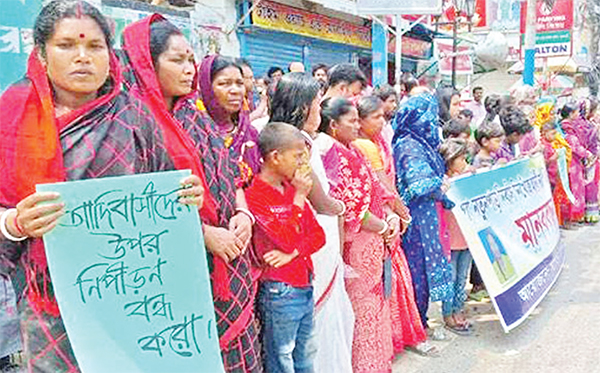 ক্ষুদ্র নৃ-গোষ্ঠী নারীর সন্ধান চেয়ে মানববন্ধন