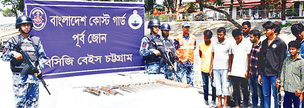 গতকাল মঙ্গলবার বিকালে কোস্ট গার্ড সদর দপ্তরের মিডিয়া কর্মকর্তা লেফটেন্যান্ট সিয়ামণ্ডউল-হক বলেন, গোপন সংবাদের ভিত্তিতে জানা যায় একদল ডাকাত চট্টগ্রাম বর্হিনোঙ্গর এলাকায় বিদেশি জাহাজে ডাকাতির উদ্দেশ্যে অবস্থান করছে। প্রাপ্ত সংবাদের ভিত্তিতে রাতে বিসিজি বেইস চট্টগ্রামের একটি দল ছদ্মবেশে কয়েকটি বোটে বর্হিনোঙ্গর এলাকায় অবস্থান করে। এ সময় চট্টগ্রাম বর্হিনোঙ্গর হতে আনুমানিক ২ মাইল উত্তর-পূর্বে একটি ইঞ্জিনচালিত কাঠের বোটের গতিবিধি সন্দেহজনক মনে হয়। কোস্ট গার্ড আভিযানিক দল বোটটিকে থামার সংকেত দিলে বোটে থাকা ব্যক্তিবর্গ কোস্ট গার্ডের উপস্থিতি বুঝতে পেরে দ্রুত পালানোর চেষ্টা করে। পরবর্তীতে উত্তাল সমুদ্রে ১ ঘণ্টা ধাওয়া করে বোটটিকে আটক করা হয়। অতঃপর বোটটি তল্লাশি করে ১২ জন ডাকাত আটকসহ ১১টি রামদা, ১টি করাত, ১টি শাবল, ১টি প্লায়ার, ১টি স্পেনার এবং ১২টি মোবাইল জব্দ করা হয়।