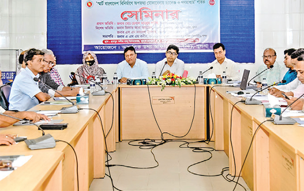 খুলনা আঞ্চলিক তথ্য অফিসের আয়োজনে ‘স্মার্ট বাংলাদেশ বিনির্মাণে অপতথ্য মোকাবিলায় চ্যালেঞ্জ ও গণমাধ্যম’ শীর্ষক সেমিনার গতকাল বুধবার সকালে খুলনা প্রেসক্লাবের হুমায়ুন কবীর বালু মিলনায়তনে অনুষ্ঠিত হয়। সেমিনারে প্রধান অতিথি ছিলেন খুলনার অতিরিক্ত বিভাগীয় কমিশনার (সার্বিক) মো: ফিরোজ শাহ। প্রধান অতিথি তার বক্তৃতায় বলেন, একজন ব্যক্তিকে স্মার্ট হতে হলে আগে নিজের ভাবনাকে স্মার্ট করতে হবে। তিনি গণমাধ্যমকর্মীদের উদ্দেশ্য করে বলেন, আপনারা সমাজের দর্পণ হিসেবে কাজ করে থাকেন। তাই আপনাদের সঠিক তথ্য প্রদান করতে হবে। দিন দিন তথ্যপ্রযুক্তির ব্যবহার বেড়ে চলছে, এর অপব্যবহাররোধে নিয়ন্ত্রণ থাকা দরকার। আমরা যেন রাষ্ট্রীয়, সামাজিক, ব্যক্তিজীবনে তথ্যের অপব্যবহার না করি, এজন্য সবাইকে প্রযুক্তির সঠিক ব্যবহার করার আহ্বান জানান তিনি। সেমিনারে সভাপতির বক্তৃতায় খুলনা আঞ্চলিক তথ্য অফিসের উপপ্রধান তথ্য অফিসার এএসএম কবীর বলেন, ২০৪১ সালের ১৬ ডিসেম্বরের মধ্যে বাংলাদেশ উন্নত দেশের কাতারে পৌঁছাতে চায়। সেদিনের বাংলাদেশ হবে সুখী, সমৃদ্ধ ও স্মার্ট বাংলাদেশ। অপতথ্যের বিস্তার আমাদের অগ্রযাত্রাকে বাঁধাগ্রস্ত করতে পারে। অপতথ্যের বিস্তাররোধে গণমাধ্যমগুলোর ইতিবাচক ভূমিকা রাখার সুযোগ রয়েছে। প্রত্যেক সচেতন নাগরিকের অপতথ্য চেনার সক্ষমতা অর্জন করতে হবে। সেমিনারে বিশেষ অতিথির বক্তৃতা করেন রপ্তানি উন্নয়ন ব্যুরোর খুলনা কার্যালয়ের পরিচালক (উপসচিব) জিনাত আরা আহমেদ ও খুলনা প্রেসক্লাবের সভাপতি এসএম নজরুল ইসলাম। খুলনা আঞ্চলিক তথ্য অফিসের সহকারী তথ্য অফিসার মো: আতিকুর রহমান মুফতির সঞ্চালনায় সেমিনারে মূলপ্রবন্ধ উপস্থাপন করেন সিনিয়র তথ্য অফিসার মো: মেহেদী হাসান।