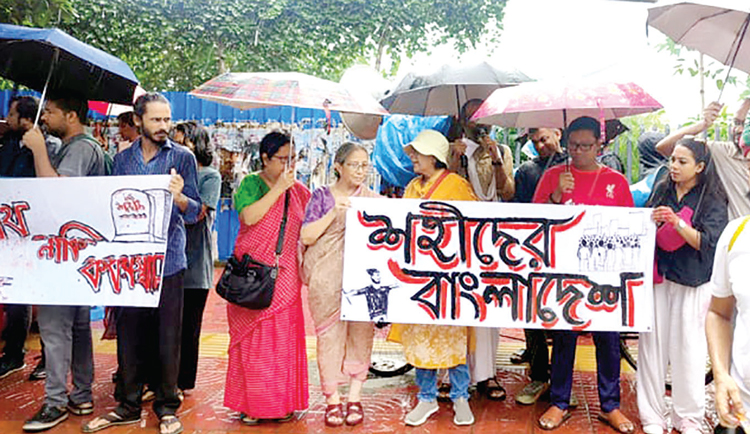 তিন দফা দাবিতে রাস্তায় শিল্পীরা