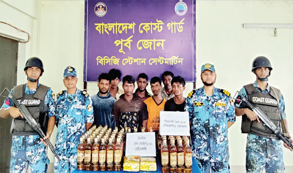 সেন্টমার্টিনে কোস্ট গার্ডের অভিযানে ২ কেজি ক্রিস্টাল মেথ (আইস) ও বিপুল পরিমাণ বিদেশি মদসহ ৭ জন আটক হয়েছেন। গতকাল বুধবার দুপুরে কোস্ট গার্ড সদর দপ্তরের মিডিয়া কর্মকর্তা লেফটেন্যান্ট কমান্ডার সাব্বির আলম সুজন এ তথ্য জানান। তিনি বলেন, গোপন সংবাদের ভিত্তিতে গত মঙ্গলবার দিবাগত রাত ৩ ঘটিকায় বাংলাদেশ কোস্ট গার্ড পূর্ব জোন অধীনস্থ বিসিজি স্টেশন সেন্টমার্টিন কর্তৃক সেন্টমার্টিন ছেঁড়াদ্বীপ হতে আনুমানিক ০১ নটিক্যাল মাইল দক্ষিণ-পূর্বে বাংলাদেশ সমুদ্র এলাকায় একটি বিশেষ অভিযান পরিচালনা করা হয়। অভিযান চলাকালীন মায়ানমার সমুদ্র এলাকা হতে সন্দেহজনক একটি কাঠের বোট বাংলাদেশ সমুদ্র এলাকায় প্রবেশ করে। কোস্ট গার্ড অভিযানিক দল কর্তৃক উক্ত বোটটিকে থামার সংকেত দিলে বোটটি সংকেত অমান্য করে দ্রুত পালিয়ে যাওয়ার চেস্টা করলে কোস্টগার্ড বোটটি আটক করতে সক্ষম হয়। অতঃপর বোটটি তল্লাশী করত ৮৩ বোতল বিদেশি মদ ও ০২ কেজি ক্রিস্টাল মেথসহ (আইস) ৭ জন মাদক চোরাচালানকারীকে আটক করা হয়।