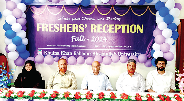 বিপুল উৎসাহ-উদ্দীপনার মধ্য দিয়ে গতকাল খুলনা খান বাহাদুর আহছানউল্লা বিশ্ববিদ্যালয়ের ফল-২০২৪ সেমিস্টারে ভর্তিকৃত নবাগত শিক্ষার্থীদের নবীনবরণ অনুষ্ঠিত হয়। অত্র বিশ্ববিদ্যালয়ের ভারপ্রাপ্ত রেজিস্ট্রার ড. কাজী মোকলেছুর রহমানের সভাপতিত্বে উক্ত নবীনবরণ অনুষ্ঠানে প্রধান অতিথির আসন অলংকৃত করেন বিশ্ববিদ্যালয়ের ভাইস-চ্যান্সেলর প্রফেসর ড. মো. মাহমুদ আলম। প্রধান অতিথি তার বক্তব্যের শুরুতেই বৈষম্যবিরোধী ছাত্র আন্দোলনে নিহত শহীদদের রূহের মারফিরাত ও আহতদের আশু সুস্থতা কামনা করেন এবং শোকাহত পরিবারের প্রতি গভীর সমবেদনা জানান। তিনি তার বক্তব্যে বলেন, মানব জীবনে মধুর ও গুরুত্বপূর্ণ একটি বয়স হল শিক্ষা জীবন। শিক্ষা জীবনে বৃহৎ পরিসরে জ্ঞান চর্চার সর্ববৃহৎ প্রতিষ্ঠান হল বিশ্ববিদ্যালয়।