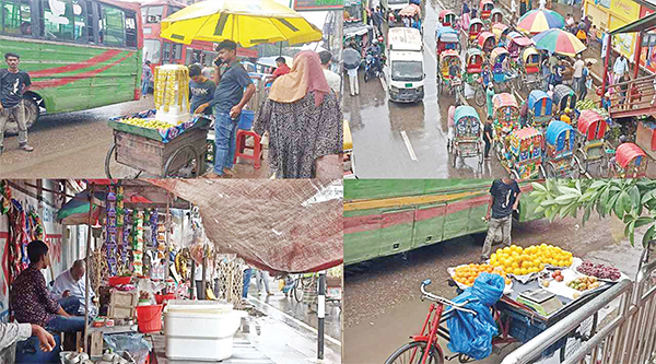 আবার যাত্রী না পাওয়ার দাবি করেছেন ব্যাটারিচালিত রিকশার চালকরাও। দৈনিক এক হাজার থেকে ১২০০ টাকা আয় করা রিকশাচালকদের আয় আজ পাঁচশো টাকার নিচে নামতে পারে বলে ধারণা করছেন ব্যাটারিচালিত রিকশার চালকরা। এদিকে নগরীর বিভিন্ন এলাকা ঘুরে দেখা গেছে ফুটপাতে চায়ের দোকানগুলোতে খদ্দের সংকট। অলস সময় পার করছেন দোকানিরা। শরবত বিক্রির দোকানগুলোতে একাই দাঁড়িয়ে আছেন দোকানি। কোথাওবা দোকান ভিজছে গুঁড়ি গুঁড়ি বৃষ্টিতে, দূরে দাঁড়িয়ে দোকানি নিজেকে বৃষ্টির হাত থেকে রক্ষা করছেন।