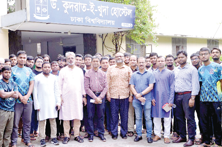 ঢাকা বিশ্ববিদ্যালয়ের উপাচার্য অধ্যাপক ড. নিয়াজ আহমদ খান গতকাল শুক্রবার সকালে ড. কুদরাত-ই-খুদা হোস্টেল এবং শহীদ এ্যাথলেট সুলতানা কামাল হোস্টেল পরিদর্শন করেন এবং শিক্ষার্থীদের সঙ্গে মতবিনিময় করেন। এ সময় অন্যান্যের মধ্যে বিশ্ববিদ্যালয়ের কোষাধ্যক্ষ অধ্যাপক ড. মোহাম্মদ জাহাঙ্গীর আলম চৌধুরী এবং প্রক্টর সহযোগী অধ্যাপক সাইফুদ্দীন আহমদ উপস্থিত ছিলেন। * ঢাবি জনসংযোগ