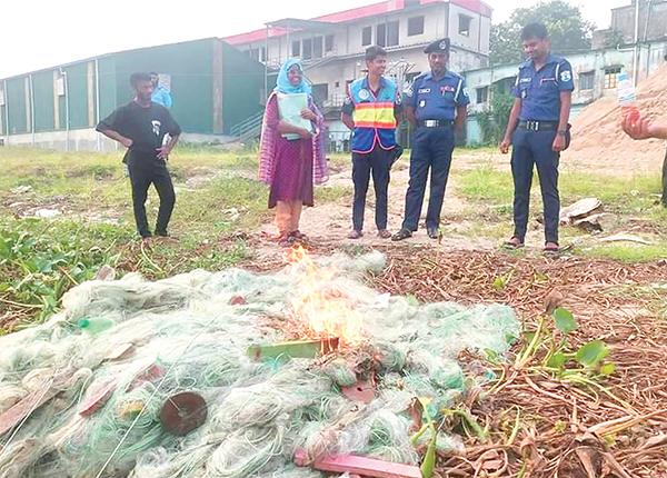 মেঘনায় অভিযান চালিয়ে অবৈধ কারেন্ট জাল জব্দ