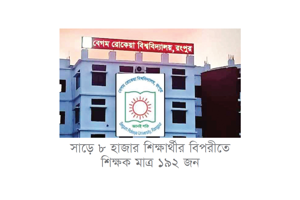 বেগম রোকেয়া বিশ্ববিদ্যালয়ে (বেরোবি) শিক্ষক সংকট একটি গুরুত্বপূর্ণ সমস্যা, যা বিশ্ববিদ্যালয়ের শিক্ষার গুণগত মান এবং শিক্ষার্থীদের শিক্ষাজীবনে নেতিবাচক প্রভাব ফেলছে। দেশের অন্যান্য পাবলিক বিশ্ববিদ্যালয়ের মতোই, বেরোবিতেও শিক্ষকের সংখ্যা শিক্ষার্থীর তুলনায় যথেষ্ট কম, ফলে বিভিন্ন বিভাগে প্রয়োজনীয় শিক্ষা প্রদান ও গবেষণা কার্যক্রম সুষ্ঠুভাবে পরিচালনা করা কঠিন হয়ে পড়েছে। বর্তমানে বিশ্ববিদ্যালয়ে প্রায় সাড়ে ৮ হাজার শিক্ষার্থীর বিপরীতে শিক্ষক রয়েছেন মাত্র ১৯২ জন। অর্থাৎ প্রতি ৪৪ শিক্ষার্থীর জন্য একজন শিক্ষক। অথচ ইউজিসির শিক্ষক শিক্ষার্থীর মানদ- অনুযায়ী প্রতিটি বিশ্ববিদ্যালয়ে প্রতি ২০ শিক্ষার্থীর জন্য একজন শিক্ষক থাকার কথা রয়েছে। বিশ্ববিদ্যালয় সূত্রে জানা যায়, এক বছর মেয়াদের দুই সেমিস্টারের স্নাতকোত্তরে পড়ানো হয় ১২ থেকে ১৪টি কোর্স। সে হিসেবে চার বছর মেয়াদের আট সেমিস্টারের স্নাতকে পড়ানো হচ্ছে ন্যূনতম ৪৮ থেকে ৫৬টি কোর্স। পর্যাপ্ত শিক্ষক না থাকায় এক শিক্ষককে নিতে হচ্ছে ৯ থেকে ১০টি কোর্স। শিক্ষক সংকটের নানা প্রভাব ও সমস্যা সম্মুখীন হচ্ছেন সাধারণ শিক্ষার্থীরা। শিক্ষার মানে অবনতি, গবেষণার উন্নয়নে প্রতিবন্ধকতা, শিক্ষকদের অতিরিক্ত পাঠদান ও প্রশাসনিক কাজের চাপ, বিভাগের পাঠদান বিঘ্নিত হওয়ার মতো ঘটনা ঘটছে। শিক্ষক সংকটের কারণে শিক্ষার্থীরা প্রয়োজনীয় দিকনির্দেশনা এবং পরামর্শ থেকে বঞ্চিত হয়, যা তাদের শিক্ষাজীবনের উপর নেতিবাচক প্রভাব ফেলে এবং তাদের আত্মবিশ্বাস হ্রাস করে। জনসংযোগ, তথ্য ও প্রকাশনা বিভাগ পরিচালক মোহাম্মদ আলী বলেন, ‘এই বিশ্ববিদ্যালয়ের ১৫ বছর মেয়াদি পরিকল্পনা অনুযায়ী প্রতি ১৬ জন শিক্ষার্থীর বিপরীতে একজন করে শিক্ষক থাকার কথা রয়েছে। কিন্তু এই বিশ্ববিদ্যালয়ের এখনো প্রায় ৪০ জন শিক্ষার্থীর বিপরীতে একজন শিক্ষক আছে। যা বিশ্ববিদ্যালয়ের জন্যে অপ্রতুল। শিক্ষার গুণগত মান উন্নয়নে জরুরি ভিত্তিতে আরো শিক্ষক নিয়োগ দেয়া প্রয়োজন।’ উপাচার্য ড. শওকাত আলী বলেন, ‘বিশ্ববিদ্যালয়ের শিক্ষক সংকট প্রকট। এইদিকে আবু সাঈদ হত্যাকাণ্ডের জড়িত দুই শিক্ষককে বহিষ্কার করা হয়েছে। সেখানে গণিত বিভাগের একজন ও লোকপ্রশাসন বিভাগের একজন শিক্ষক রয়েছে। বিশ্ববিদ্যালয়ের ২২টি ডিপার্টমেন্টের শিক্ষা কার্যক্রম পরিচালনা করতে হলে শিক্ষক নিয়োগ ছাড়া কোনো বিকল্প নেই।’ এদিকে গত ১৩ নভেম্বর শিক্ষক সংকট থাকায় ক্লাস নিতে দেখা যায় উপাচার্য প্রফেসর ড. শওকাত আলীকে।