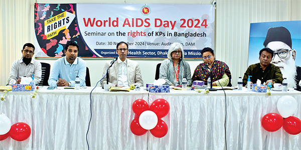 এইডসের জন্য ঝুঁকিপূর্ণ জনগোষ্ঠীর মানবাধিকার সুরক্ষার আহ্বান জানিয়েছেন ইউএনএআইডিএস বাংলাদেশের কান্ট্রি ডিরেক্টর ডা. সায়মা খান। গতকাল শনিবার ঢাকা আহ্ছানিয়া মিশনের অডিটোরিয়ামে এ আহ্বান জানান তিনি। বিশ্ব এইডস দিবস উপলক্ষে এই সেমিনার আয়োজন করে ঢাকা আহ্ছানিয়া মিশন স্বাস্থ্য ও ওয়াশ সেক্টর। সেমিনারের প্রতিপাদ্য ছিল, ‘অধিকার নিশ্চিত হলে, এইচআইভি/এইডস যাবে চলে।’