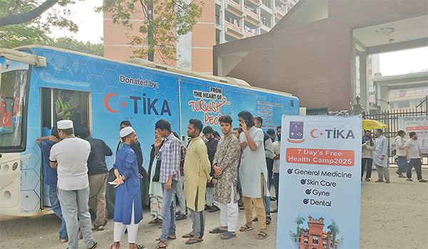 ঠাই দাঁড়িয়ে আছে আসমানী রঙের একটি বাস, এর পাশে সারিবদ্ধভাবে দাঁড়িয়ে আছেন ঢাকা বিশ্ববিদ্যালয়ের একদল শিক্ষার্থী। সবার হাতে একটি করে কাগজের টোকেন, যেগুলোতে লেখা আলাদা আলাদা সংখ্যা। লাইন থেকে একটু এগিয়ে গিয়ে বাসের ভিতরে ঢুকতেই চোখে পড়লো একদল চিকিৎসকের। এক জনের পর একজন শিক্ষার্থী ভিতরে আসছেন আর চিকিৎসা নিয়ে বেরিয়ে যাচ্ছেন। গতকাল বিকালে এমন চিত্র দেখা গেছে ইসলামী ছাত্রশিবিরের ঢাকা বিশ্ববিদ্যালয় শাখা আয়োজিত ফ্রি মেডিকেল ক্যাম্পে। বিশ্ববিদ্যালয় প্রাঙ্গণে আয়োজিত এই ফ্রি চিকিৎসা সেবা বিশ্ববিদ্যালয়ের শিক্ষার্থী, কর্মকর্তা-কর্মচারীদের জন্য উন্মুক্ত করেছে সংগঠনটি।