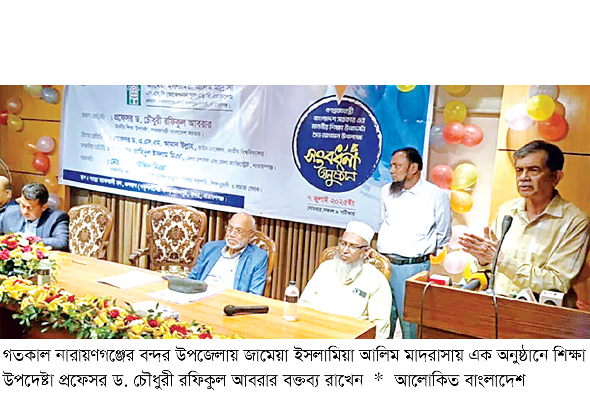 অন্তর্বর্তী সরকারের এই উপদেষ্টা আরও বলেন, আমাদের শিক্ষা ব্যবস্থাকে ঢেলে সাজাতে হবে। হয়তো আমাদের হাতে তেমন সময় নেই। কিন্তু তারপরও কারিগরি শিক্ষার ওপর আগের তুলনায় এখন জোর দিতে হবে। সেদিক থেকে আমরা অঙ্গীকারবদ্ধ। সে কারণে বেশ কিছু কার্যকরী কার্যক্রম হাতে নেওয়া হয়েছে। সময় শেষ হওয়ার আগেই আমরা কিছু কিছু কাজ করে দিতে চাই। জামেয়া ইসলামিয়া আলিম মাদরাসার সভাপতি জামাল উদ্দিন ভূঁইয়ার সভাপতিত্বে এসময় আরও উপস্থিত ছিলেন নারায়ণগঞ্জ জেলা প্রশাসক জাহিদুল ইসলাম মিঞা, জেলা পুলিশ সুপার প্রত্যুষ কুমার মজুমদার ও বন্দর উপজেলা ইউএনও মোস্তাফিজুর রহমান।