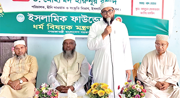 পবিত্র আশুরা ১৪৪৭ হিজরি উদযাপন উপলক্ষে ইসলামিক ফাউন্ডেশনের উদ্যোগে গত রোববার বায়তুল মুকাররম জাতীয় মসজিদে ‘পবিত্র আশুরার গুরুত্ব ও তাৎপর্য’ শীর্ষক সংক্ষিপ্ত আলোচনা ও দোয়া মাহফিল অনুষ্ঠিত হয়েছে। অনুষ্ঠানে আলোচক হিসেবে উপস্থিত ছিলেন মদিনাতুল উলুম মডেল ইনস্টিটিউট মহিলা কামিল মাদ্রাসার অধ্যক্ষ মুফতি মাওলানা মো. মুজির উদ্দীন। সভাপতিত্ব করেন দ্বীনি দাওয়াত ও সংস্কৃতি বিভাগের পরিচালক ড. মোহাম্মদ হারুনূর রশীদ। এছাড়া অনুষ্ঠানে ইসলামিক ফাউন্ডেশনের কর্মকর্তা-কর্মচারী ও সাধারণ মুসল্লীরা উপস্থিত ছিলেন। সূত্র : সংবাদ বিজ্ঞপ্তি