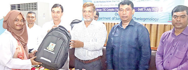 শেরেবাংলা কৃষি বিশ্ববিদ্যালয়ের এনিম্যাল সায়েন্স অ্যান্ড ভেটেরিনারি মেডিসিন অনুষদের শেষবর্ষের শিক্ষার্থীদের মাঝে সার্জিক্যাল এবং অবস্টেট্রিক্যাল বক্স বিতরণ প্রোগ্রাম-২০২৫ অনুষ্ঠিত হয়েছে। গতকাল বুধবার সকালে টিএসসির ২য় তলায় মোট ১০৮ জন শিক্ষার্থীদের মাঝে এ সার্জিক্যাল এবং অবস্টেট্রিক্যাল বক্স বিতরণ করা হয়। সার্জারি এন্ড থেরিওজেনোলজি বিভাগের মাধ্যমে বিশ্ববিদ্যালয় প্রশাসন এই সার্জিক্যাল এবং অবস্টেট্রিক্যাল বক্স প্রদান করে। অনুষ্ঠানে প্রধান অতিথি ছিলেন বিশ্ববিদ্যালয়ের উপাচার্য অধ্যাপক ড. মো. আব্দুল লতিফ। বিশেষ অতিথি হিসেবে উপস্থিত ছিলেন ট্রেজারার অধ্যাপক মুহাম্মদ আবুল বাশার। সূত্র: সংবাদ বিজ্ঞপ্তি