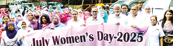 বাংলাদেশ মেডিকেল বিশ্ববিদ্যালয়ের (বিএমইউ) উদ্যোগে জাতীয় কর্মসূচির অংশ হিসেবে জুলাই ওমেন্স ডে উপলক্ষে র্যালি ও জুলাই গণঅভ্যুত্থানে নারীদের অবদান নিয়ে একটি আলোচনা সভা অনুষ্ঠিত হয়েছে। গতকাল সোমবার বিশ্ববিদ্যালয়ের শহিদ ডা. মিলন হলে এ সভা অনুষ্ঠিত হয়। এ উপলক্ষে সকালে বিএমইউর বি ব্লকের সামনে থেকে ভাইস চ্যান্সেলর অধ্যাপক ডা. মো. শাহিনুল আলম নেতৃত্বে একটি র্যালি বের হয়। র্যালিতে প্রো-ভাইস চ্যান্সেলররা, কোষাধ্যক্ষসহ বিএমইউর ঊর্ধ্বতন কর্মকর্তারা, শিক্ষক, চিকিৎসক, কর্মকর্তা, নার্সরা ও কর্মচারীরা উপস্থিত ছিলেন। সূত্র : সংবাদ বিজ্ঞপ্তি