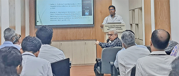 বাংলাদেশ মেডিকেল বিশ্ববিদ্যালয়ের হেপাটোলজি বিভাগের আয়োজনে ‘অ্যান্টি এইচবিসি টোটাল পজিটিভণ্ডধারণা ও ভুল ধারণা (Anti HBc Total Positive– Conception and misconception)’ শীর্ষক বৈজ্ঞানিক সভা অনুষ্ঠিত হয়েছে। গতকাল শনিবার বিশ্ববিদ্যালয়ের অধ্যাপক মবিন খান ডিজিটাল ক্লাসরুমে অনুষ্ঠিত সভায় আধুনিক হেপাটোলজির জটিল অথচ গুরুত্বপূর্ণ এই বিষয়ের উপর আলোচনায় অংশ নেন বাংলাদেশ মেডিক্যাল বিশ্ববিদ্যালয়ের হেপাটোলজী বিভাগের বিশেষজ্ঞ চিকিৎসকগণ, রেসিডেন্ট, এবং দেশ ও দেশের বাইরের স্বনামধন্য লিভার বিশেষজ্ঞবৃন্দ। অনুষ্ঠানে যুক্ত ছিলেন হেপাটোলজি (লিভার) বিভাগের চেয়ারম্যান এবং বাংলাদেশ মেডিক্যাল বিশ্ববিদ্যালয়ের মাননীয় ভাইস চ্যান্সেলর অধ্যাপক ডা. মো. শাহিনুল আলম। সূত্র : সংবাদ বিজ্ঞপ্তি
