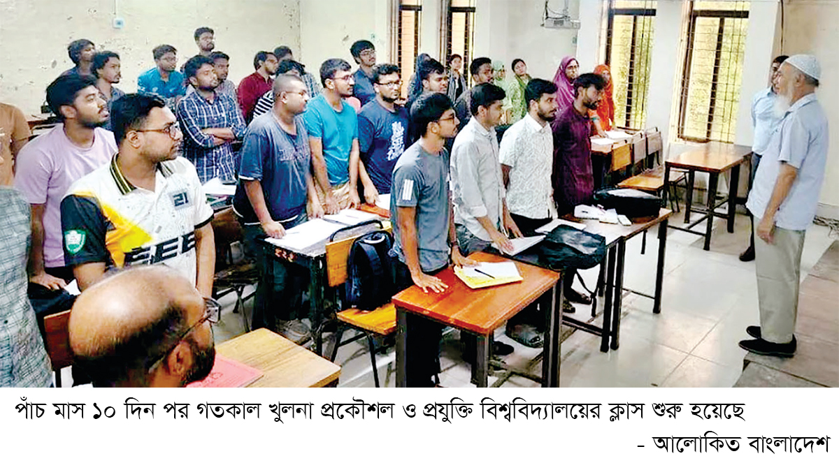 ছাত্ররাজনীতি বন্ধের দাবি নিয়ে সংঘর্ষের ঘটনায় পাঁচ মাস বন্ধ থাকার পর গতকাল মঙ্গলবার খুলনা প্রকৌশল ও প্রযুক্তি বিশ্ববিদ্যালয়ে শ্রেণি কার্যক্রম শুরু হয়েছে। দীর্ঘদিন পর শ্রেণিকার্যক্রমে ফিরতে পেরে উচ্ছ্বাস প্রকাশ করেছেন শিক্ষার্থীরা।