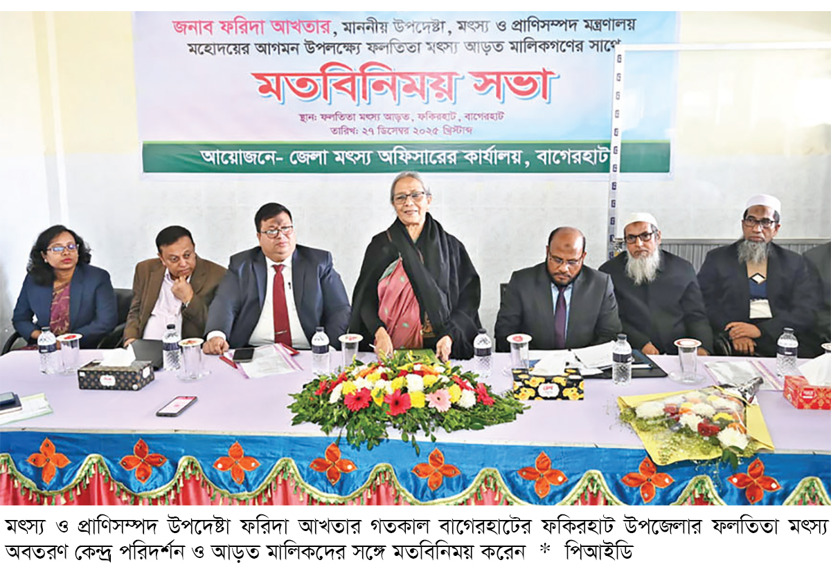 মৎস্য ও প্রাণিসম্পদ উপদেষ্টা ফরিদা আখতার বলেছেন, বাংলাদেশের চিংড়ির স্বাদ ও মান বিশ্বব্যাপী স্বীকৃত। তবে আন্তর্জাতিক বাজারে শুধু আকার বা স্বাদ বিবেচ্য নয়; রপ্তানিকারক ও উৎপাদনকারীদের আন্তর্জাতিক মান ও পদ্ধতি অনুসরণ করতে হবে। গতকাল শনিবার সকালে বাগেরহাটের ফকিরহাট উপজেলার ফলতিতা মৎস্য অবতরণ কেন্দ্র পরিদর্শন ও আড়ৎ মালিকদের সঙ্গে মতবিনিময় সভায় এসব কথা বলেন তিনি।