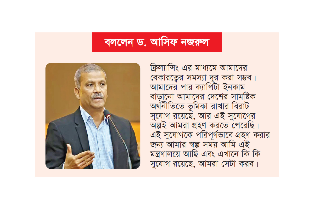 ড. আসিফ নজরুল বলেন, দেশের শিক্ষিত যুবকদের মধ্যে ফ্রিল্যান্সিংয়ের প্রচুর উপযোগিতা রয়েছে এবং এটাকে আমাদের আরও বিস্তৃত করতে হবে।