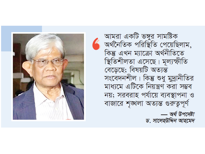 অর্থ উপদেষ্টা ড. সালেহউদ্দিন আহমেদ বলেছেন, বিগত সরকারের কাছ থেকে উত্তরাধিকার সূত্রে একটি চ্যালেঞ্জিং সামষ্টিক অর্থনৈতিক পরিস্থিতি পাওয়ার পরও বাংলাদেশের অর্থনীতি সহনশীলতা দেখিয়েছে এবং ধীরে ধীরে স্থিতিশীলতার পথে এগোচ্ছে। গতকাল শনিবার রাজধানীর সিরডাপ আন্তর্জাতিক সম্মেলন কেন্দ্রে ‘ব্যাংকিং অ্যালম্যানাক’- এর সপ্তম সংস্করণের প্রকাশনা অনুষ্ঠানে অর্থ তিনি এসব কথা বলেন। অর্থ উপদেষ্টা নীতিনির্ধারক, বিশ্লেষক ও গণমাধ্যমের প্রতি সম্মিলিতভাবে বাংলাদেশের অর্জন ও চ্যালেঞ্জগুলোকে ভারসাম্যপূর্ণভাবে উপস্থাপনের আহ্বান জানান। তিনি বলেন, ‘আমরা একটি ভঙ্গুর সামষ্টিক অর্থনৈতিক পরিস্থিতি পেয়েছিলাম, কিন্তু এখন ম্যাক্রো অর্থনীতিতে স্থিতিশীলতা এসেছে। মূল্যস্ফীতি বেড়েছে; বিষয়টি অত্যন্ত সংবেদনশীল। কিন্তু শুধু মুদ্রানীতির মাধ্যমে এটিকে নিয়ন্ত্রণ করা সম্ভব নয়; সরবরাহ পর্যায়ে ব্যবস্থাপনা ও বাজারে শৃঙ্খলা অত্যন্ত গুরুত্বপূর্ণ। অতিরিক্ত মুনাফালোভ ও মজুতদারি শুধু আইন প্রয়োগের মাধ্যমে দমন করা যায় না- এ জন্য পাইকার, ব্যবসায়ী ও খুচরা বিক্রেতাদের সহযোগিতা প্রয়োজন।’