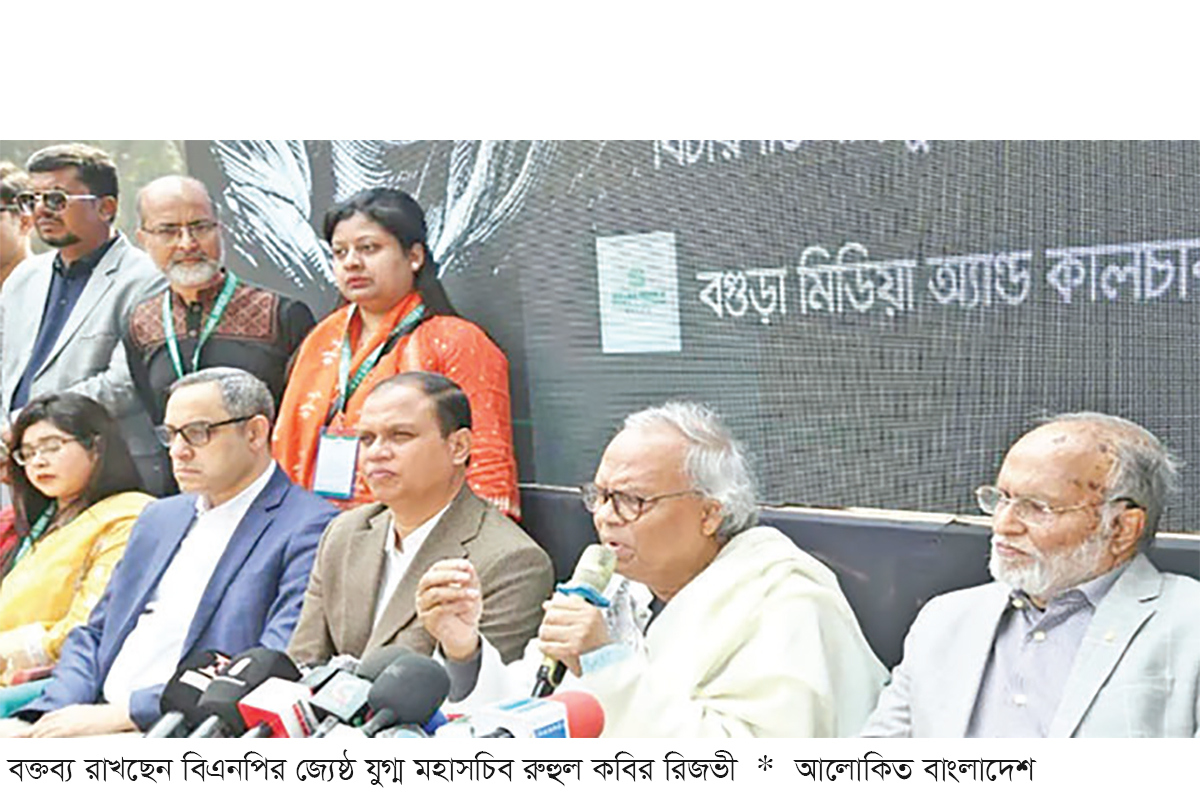 বিএনপির সিনিয়র যুগ্ম মহাসচিব রুহুল কবির রিজভী আহমেদ বলেছেন, ‘একজন খালেদা জিয়া ছিলেন বলেই বাংলাদেশের স্বাধীনতা ও সার্বভৌমত্ব সুরক্ষিত ছিল।’ গতকাল শুক্রবার সকালে রাজধানীর গুলশানে বিচারপতি শাহাবুদ্দিন পার্কে সাবেক তিনবারের প্রধানমন্ত্রী ও বিএনপির প্রয়াত চেয়ারপার্সন বেগম খালেদা জিয়ার স্মরণে আয়োজিত তিন দিনব্যাপী আলোকচিত্র প্রদর্শনীর উদ্বোধনকালে তিনি এ কথা বলেন। প্রদর্শনীটি আয়োজন করেছে ‘বগুড়া মিডিয়া অ্যান্ড কালচারাল ফোরাম, ঢাকা’। প্রধান অতিথির বক্তব্যে রুহুল কবির রিজভী বলেন, ভারতের ঝাড়খণ্ড থেকে যে বিদ্যুৎ বাংলাদেশে আসছে, সেই বিদ্যুৎ প্লান্টটি (কেন্দ্র) খোদ ভারত সরকারের পরিকল্পনা মন্ত্রণালয় বাতিল করে দিয়েছিল। কিন্তু বিগত ফ্যাসিবাদী সরকারের আমলে সেই বিতর্কিত প্রকল্পটি বাংলাদেশের রামপালে বাস্তবায়ন করা হয়েছে। তিনি অভিযোগ করেন, খালেদা জিয়াকে দিয়ে এমন দেশবিরোধী প্রকল্প করানো সম্ভব ছিল না বলেই তাঁকে জেলে বন্দি করা হয়েছিল এবং সুচিকিৎসা না দিয়ে তিলে তিলে মৃত্যুর দিকে ঠেলে দেওয়ার পরিকল্পনা করা হয়েছিল।