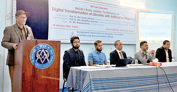 বাংলাদেশ অ্যসোসিয়েশন অব লাইব্রেরিয়ান্স, ইনফরমেশন সায়েন্টিস্টস অ্যান্ড ডকুমেন্টালিস্টস (বেলিড)-এর ৪০তম বার্ষিকী উদযাপন করা হয়েছে। এ উপলক্ষে গত শুক্রবার ঢাকার ধানমন্ডিস্থ ডব্লিউভিএ অডিটোরিয়ামে ‘কৃত্রিম বুদ্ধিমত্তার মাধ্যমে গ্রন্থাগারের ডিজিটাল রূপান্তর’ শীর্ষক দিনব্যাপী একটি সম্মেলনের আয়োজন করা হয়। বেলিড চেয়ারম্যান ড. মো. মনিরুজ্জামান সম্মেলনের উদ্বোধন করেন এবং সম্মেলনের আহ্বায়ক অধ্যাপক ড. মো. মোস্তাফিজুর রহমান সম্মেলনের তাৎপর্য তুলে ধরে বক্তব্য রাখেন। ড. নাসিম ইকবাল সম্মেলনে সম্মানিত অতিথি হিসেবে বক্তব্য রাখেন। তিনটি কারিগরি অধিবেশনে পাঁচটি গবেষণাপত্র উপস্থাপন করা হয়, যেগুলোতে সভাপতিত্ব করেন যথাক্রমে অধ্যাপক ড. এসএম জাবেদ আহমেদ, ঢাকা বিশ্ববিদ্যালয়, অধ্যাপক ড. মো. সাইফুল ইসলাম, ঢাকা বিশ্ববিদ্যালয় এবং নর্থসাউথ বিশ্ববিদ্যালয়ের ইউনিভার্সিটি লাইব্রেরিয়ান ড. মো. জাহিদ হোসেন শোয়েব। সূত্র: সংবাদ বিজ্ঞপ্তি