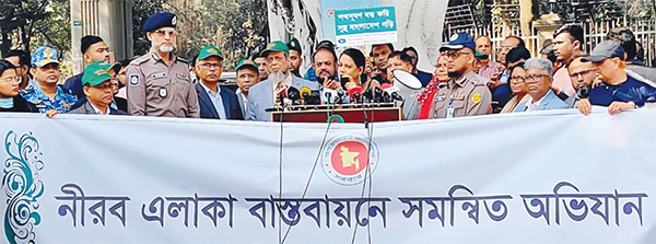 ঢাকা মেট্রোপলিটন পুলিশ (ডিএমপি), ঢাকা দক্ষিণ সিটি কর্পোরেশন (ডিএসসিসি), বাংলাদেশ সড়ক পরিবহন কর্তৃপক্ষ (বিআরটিএ) ও পরিবেশ অধিদপ্তরের সমন্বয়ে নীরব এলাকা বাস্তবায়নে সমন্বিত অভিযান পরিচালনার ধারাবাহিকতার অংশ হিসেবে ০৩ ফেব্রুয়ারি ২০২৬ তারিখ সকাল ১০.৩০টায় হাইকোর্টের মাজার গেইটের সম্মুখে এক সংক্ষিপ্ত সমাবেশের আয়োজন করা হয়। উক্ত আয়োজনে প্রধান অতিথি হিসেবে উপস্থিত ছিলেন পরিবেশ, বন ও জলবায়ু পরিবর্তন মন্ত্রণালয়ের উপদেষ্টা সৈয়দা রিজওয়ানা হাসান। তিনি বলেন, ‘শব্দদূষণ নিয়ন্ত্রণ বিধিমালা, ২০২৫ এ পুলিশকে তাৎক্ষণিক জরিমানা আদায় করার ক্ষমতা প্রদান করার পর থেকে নীরব এলাকা বাস্তবায়নে সমন্বিত অভিযান পরিচালনা করা হচ্ছে। গত মাসে বিমানবন্দর এলাকায় এই সমন্বিত অভিযানের উদ্বোধন করা হয়েছে। তিনি প্রত্যাশা ব্যক্ত করে বলেন, নির্বাচনের পরে যদি পুলিশ এবং পরিবেশ অধিদপ্তর একসঙ্গে কাজ করে তাহলে শব্দদূষণের যে অত্যাচার সেটা থেকে আমরা হয়তো মুক্তি পেতে পারব।