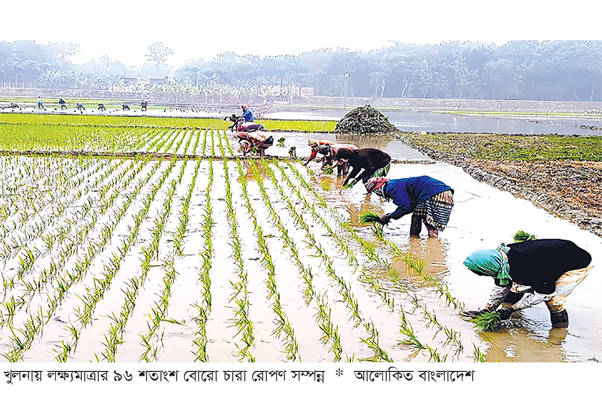 খুলনা কৃষি অঞ্চলের কৃষকরা এরইমধ্যে চলতি মৌসুমে বোরো ধান রোপণের কাঙ্ক্ষিত লক্ষ্যমাত্রার ৯৬ শতাংশ অর্জন করেছেন। তারা এ অঞ্চলের ৯৬ শতাংশ জমিতে বোরো ধানের চারা রোপণ সম্পন্ন করেছেন। যা ধানের উৎপাদন বৃদ্ধি এবং দেশের খাদ্য নিরাপত্তা আরও জোরদার করার ক্ষেত্রে গুরুত্বপূর্ণ অর্জন।