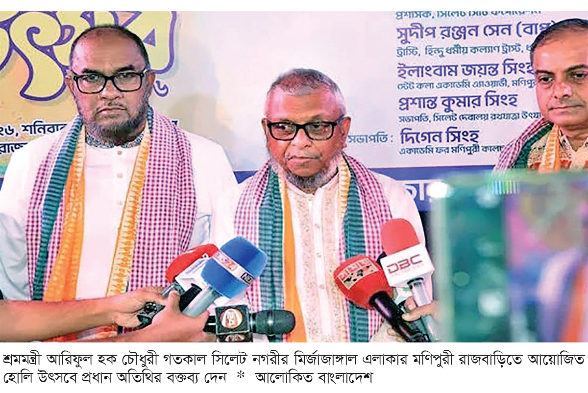সিলেটের আইনশৃঙ্খলা পরিস্থিতি অবনতির সঙ্গে জড়িতদের বিরুদ্ধে কঠোর ব্যবস্থা নেওয়ার হুঁশিয়ারি দিয়েছেন শ্রম ও কর্মসংস্থান এবং প্রবাসীকল্যাণ ও বৈদেশিক কর্মসংস্থানমন্ত্রী আরিফুল হক চৌধুরী। তিনি বলেছেন, সন্ত্রাসী-চাঁদাবাজদের বিরুদ্ধে প্রধানমন্ত্রী জিরো টলারেন্স ঘোষণা করেছেন। তাই কোনোভাবেই এসব কর্মকাণ্ড সহ্য করা হবে না। গতকাল শনিবার সকালে সিলেট নগরীর মির্জাজাঙ্গাল এলাকার মণিপুরী রাজবাড়িতে আয়োজিত হোলি উৎসবে প্রধান অতিথির বক্তব্য শেষে সাংবাদিকদের প্রশ্নের জবাবে তিনি এসব কথা বলেন। মন্ত্রী বলেন, সিলেটের আইনশৃঙ্খলা পরিস্থিতির যারা অবনতি ঘটাচ্ছে তাদের কোনোভাবেই ছাড় দেওয়া হবে না। আমরা একটি নিরাপদ সিলেট চাই।