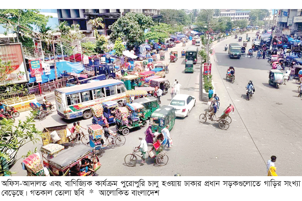 পবিত্র ঈদুল ফিতরের স্বস্তি কাটতে না কাটতেই রাজধানীজুড়ে আবারও বাড়তে শুরু করেছে যানবাহনের চাপ। অফিস-আদালত, শিক্ষা প্রতিষ্ঠান এবং বাণিজ্যিক কার্যক্রম পুরোপুরি চালু হওয়ায় ঢাকার প্রধান সড়কগুলোতে দেখা দিয়েছে যানজট। সপ্তাহের কর্মদিবসগুলোতে সকাল থেকে রাত পর্যন্ত নগরীর গুরুত্বপূর্ণ সড়কগুলোতে গাড়ির দীর্ঘ সারি এখন নিয়মিত দৃশ্য হয়ে উঠেছে। বিশেষ করে সকালে অফিসগামী মানুষের ভিড় এবং বিকালে ফেরার সময় যানজট আরও প্রকট হয়ে উঠছে। এতে করে ভোগান্তিতে পড়ছেন সাধারণ যাত্রী থেকে শুরু করে পণ্য পরিবহন সংশ্লিষ্টরা।
