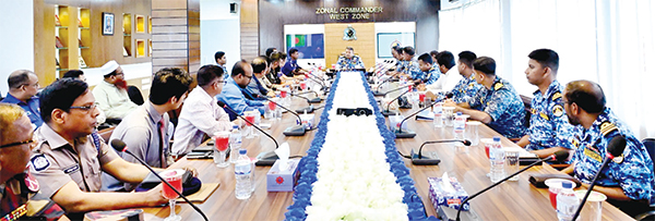এছাড়াও বহিঃনোঙ্গরে ছিঁচকে চুরি ও ডাকাতি প্রতিরোধ, নিরাপত্তা কাজে ওয়াচম্যান মোতায়েনের নির্দেশনা, ফিশিং ট্রলারের মাধ্যমে চোরাচালান প্রতিরোধ, সমুদ্রে ৫৮ দিনের ফিশিং ব্যান বাস্তবায়ন, অভ্যন্তরীণ ও আন্তর্জাতিক নৌ-রুটে চলাচলরত লাইটার ও কোস্টার জাহাজসমূহের নিরাপত্তা জোরদার এবং নোঙ্গর অবস্থায় আলোর ব্যবস্থা নিশ্চিতকরণ বিষয়ে প্রয়োজনীয় সিদ্ধান্ত গৃহীত হয়। তিনি আরও বলেন, বাংলাদেশ কোস্ট গার্ড দেশের উপকূলীয় নিরাপত্তা নিশ্চিতকরণ, দস্যুতা দমন এবং সকল প্রকার অপরাধ প্রতিরোধে ভবিষ্যতেও এ ধরনের কার্যক্রম অব্যাহত রাখবে। সূত্র: সংবাদ বিজ্ঞপ্তি