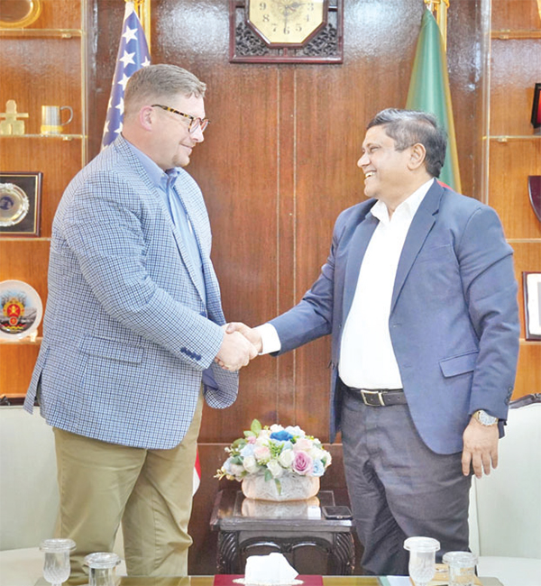 প্রধানমন্ত্রীর প্রতিরক্ষা উপদেষ্টা ব্রিগেডিয়ার জেনারেল (অব.) ড. একেএম শামছুল ইসলামণ্ডএর সঙ্গে মার্কিন যুক্তরাষ্ট্রের একটি উচ্চপর্যায়ের প্রতিনিধিদল সৌজন্য সাক্ষাৎ করেন। ঢাকা সেনানিবাসস্থ সশস্ত্র বাহিনী বিভাগে প্রতিরক্ষা উপদেষ্টার কার্যালয়ে গত বুধবার এ সাক্ষাৎ অনুষ্ঠিত হয়। সাক্ষাৎকালে, যুক্তরাষ্ট্রের প্রতিনিধিদল বাংলাদেশের সশস্ত্র বাহিনীর অগ্রাধিকারগুলো সম্পর্কে অবহিত হওয়ার পাশাপাশি Indo- Pacific Defense Security Cooperation University (DSCU)-এর মাধ্যমে বাংলাদেশ সশস্ত্র বাহিনীর সামরিক সক্ষমতা ও দক্ষতা উন্নয়নে সম্ভাব্য সহযোগিতার ক্ষেত্র নিয়ে বিস্তারিত আলোচনা করেন। এ সময় উভয় পক্ষ বাংলাদেশ ও যুক্তরাষ্ট্রের মধ্যে বিদ্যমান প্রতিরক্ষা সহযোগিতা আরও জোরদার ও সম্প্রসারণের বিষয়ে আশাবাদ ব্যক্ত করেন। এছাড়া, দ্বিপক্ষীয় সামরিক সম্পর্ক ও কৌশলগত অংশীদারিত্ব ভবিষ্যতে আরও সুদৃঢ হবে বলে একমত পোষণ করেন। অনুষ্ঠানে ঢাকায় অবস্থিত মার্কিন যুক্তরাষ্ট্র দূতাবাসের ইউনাইটেড স্টেটস মিলিটারি গ্রুপের প্রধান Lieutenant Colonel Robert Greene এবং DSCU এর রিজিওনাল প্রোগ্রাম লিড ও সহকারী অধ্যাপক Mr. Michael Rembold ছাড়া DSCU এর আরও দুইজন প্রতিনিধি উপস্থিত ছিলেন। সূত্র: সংবাদ বিজ্ঞপ্তি
