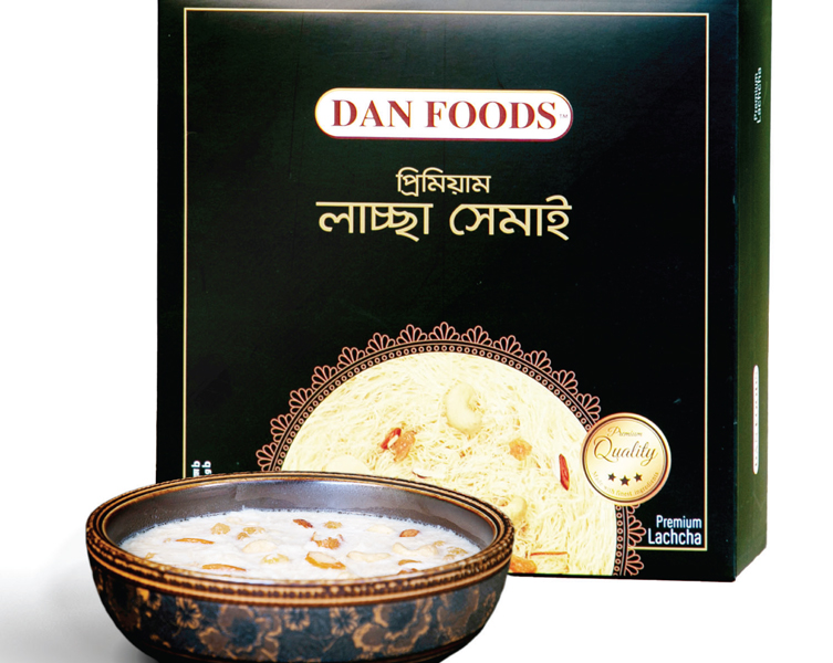 ঈদে অতিথি আপ্যায়নে লাচ্ছা সেমাই ছাড়া ভাবাই যায় না। এ ছাড়া লাচ্ছা সেমাই অনেকের পছন্দের খাবার। তাই ড্যান ফুডস এনেছে প্রিমিয়াম লাচ্ছা সেমাই। এটি প্রস্তুত করা হয়েছে কঠোর মান নিয়ন্ত্রণের মাধ্যমে। তাই স্বাস্থ্য সচেতন ক্রেতা নিশ্চিত উপভোগ করতে পারবেন লাচ্ছা সেমাইের আসল স্বাদ। এ ছাড়া এ খাবারটির ক্ষেত্রে ড্যান ফুডস শতভাগ মান নিয়ন্ত্রণ করছে। তৈরির প্রতিটি উপাদান সংগ্রহ করা হচ্ছে সতর্কতার সঙ্গে। প্রতিটি ধাপ সম্পন্ন করা হচ্ছে যথাযথ পরীক্ষার মাধ্যমে। এ ছাড়া লাচ্ছা তৈরির একটি গুরুত্বপূর্ণ উপাদান ফ্যাট। ড্যান ফুডস প্রিমিয়াম লাচ্ছা সেমাই তৈরিতে ব্যবহৃত হয়েছে নন-হাইড্রোজেনাটেড ফ্যাট। ট্রান্স ফ্যাটের ব্যবহার করা হয়েছে মাত্র ২ শতাংশ। তাই এ সেমাই শুধু স্বাস্থ্যসম্মতই নয়, স্বাদেও অতুলনীয়। ক্রেতাদের সেরা স্বাদের সন্ধান দেয়ার জন্য এ সেমাইয়ে ব্যবহার করা হয়েছে কাজু, আমন্ড, কিসমিসসহ বিভিন্ন ধরনের বাদাম। পাওয়া যাচ্ছে ২৫০ গ্রামের প্যাকেটে। দাম ২০০ টাকা। বাংলাদেশে ডেনমার্কের শীর্ষস্থানীয় স্ন্যাক্স ব্র্যান্ড ‘ড্যান কেক’ প্রস্তুতকারক এ প্রতিষ্ঠানটি এরই মধ্যে পণ্যের স্বাদ ও গুণগতমান নিশ্চিত করার কারণে সুনাম অর্জন করেছে।
