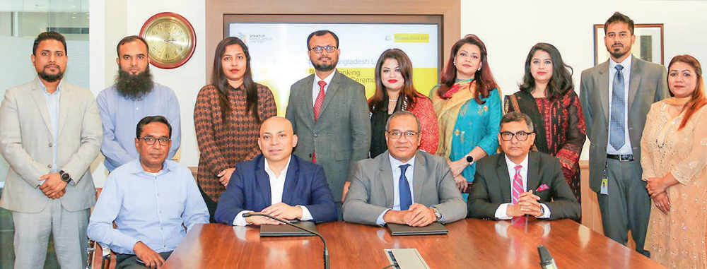 ইস্টার্ন ব্যাংক লিমিটেড (ইবিএল) উপব্যবস্থাপনা পরিচালক এবং রিটেইল ও এসএমই ব্যাংকিং প্রধান এম. খোরশেদ আনোয়ার এবং স্টার্ট আপ বাংলাদেশ লিমিটেডের ব্যবস্থাপনা পরিচালক সামি আহমেদ সম্প্রতি ঢাকায় ব্যাংকের প্রধান কার্যালয়ে একটি পে-রোল ব্যাংকিং চুক্তি স্বাক্ষর করেন। এ সময় উপস্থিত ছিলেন ইবিএল হেড অব বিজনেস সৈয়দ জুলকার নায়েন, হেড অব কমিউনিকেশন্স অ্যান্ড এক্সটারনাল অ্যাফেয়ার্স জিয়াউল করিম, হেড অব পে-রোল ব্যাংকিং নাহিদ ফারজানা। স্টার্ট আপ বাংলাদেশ হেড অব প্রটফোলিও ইনভেস্টমেন্ট হাসান এ আরিফ, কোম্পানি সেক্রেটারি এবিএম মনিরুল ইসলাম প্রমুখ।