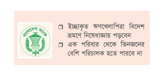 তিনি আরো বলেন, ইচ্ছাকৃত ঋণ খেলাপি হিসেবে তালিকাভুক্ত ব্যক্তি বা প্রতিষ্ঠান তালিকা থেকে অব্যাহতি পাওয়ার পর ৫ বছরের মধ্যে কোনো ব্যাংক কোম্পানি বা আর্থিক প্রতিষ্ঠানের পরিচালক হতে পারবেন না। কোনো ব্যাংক বা আর্থিক প্রতিষ্ঠানের পরিচালক ইচ্ছাকৃতভাবে ঋণ খেলাপি হিসেবে পরিগণিত হলে বাংলাদেশ ব্যাংক তার পরিচালক পদ শূন্য ঘোষণা করতে পারবে।