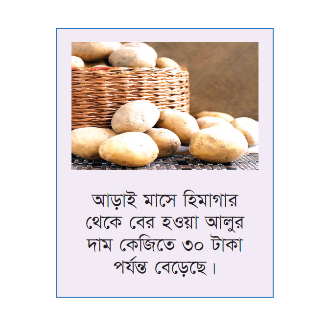 গেল দুই মাসের ব্যবধানে আলুর দাম বেড়েছে ৩০ থেকে ৪০ টাকা। রাজধানীর বিভিন্ন বাজার ঘুরে দেখা যায় আলুর দাম ছাড়িয়েছে ৫০ টাকা। আর দেশি জাতের আলুর দাম ৬০ টাকায় ঠেকেছে। সেই হিসেবে গত তিন মাসে প্রতি কেজি আলুর দাম দ্বিগুণ তিনগুন বেড়েছে। রাজধানীর কারওয়ান বাজার, মোহাম্মদপুর টাউন হলো বাজার ঘুরে দেখা গেছে, সাদা ও লাল আলু বিক্রি হচ্ছে ৫০ টাকা কেজি দরে, যা দুই দিন আগে ছিল ৪০ টাকা। দেশি ছোট গোল আলু (পাকড়ি জাতের আলু) ৬০ থেকে ৭০ টাকা দরে বিক্রি করতে দেখা গেছে। বিক্রেতারা বলেছেন, গত দুই দিনে বাজারে আলুর দাম বেড়ে প্রতি কেজি এখন ৫০ টাকা, যা আগে ছিল ৪০ টাকা। আলুর এ মূল্যবৃদ্ধি শুরু হয়েছে রোজার ঈদের পর থেকে। তখন প্রতি কেজি আলু বিক্রি হয়েছে ২৫ টাকা। তবে সংশ্লিষ্টরা বলেছেন, আলুর দাম বাড়ার কোনো যৌক্তিক কারণ খুঁজে পাওয়া যাচ্ছে না। কৃষি সম্প্রসারণ অধিদপ্তরের তথ্য বলেছে, ২০২২-২৩ অর্থবছর দেশে ১ কোটি ১১ লাখ টন আলু উৎপাদন হয়েছে, যা গত বছরের চেয়ে বেশি। ওই বছর দেশে আলু উৎপাদন হয়েছিল ১ কোটি ১০ লাখ টন। এ উৎপাদন দেশে আলুর চাহিদার তুলনায় অনেক বেশি। দেশে বার্ষিক আলুর চাহিদা ৮৫ থেকে সর্বোচ্চ ৯০ লাখ টন। অন্য বছর চাহিদার চেয়ে আলুর উৎপাদন বেশি হওয়ায় সচরাচর বাজারে দাম স্থিতিশীল থাকত। মৌসুমের শেষে হিমাগারগুলোতে আলু অবিক্রিত থেকে যেত। বছর শেষে লোকসানের কথা বলতেন ব্যবসায়ীরা। এ বছর হিমাগারে পর্যাপ্ত আলু থাকার পরও দাম বাড়ছে। কারণ, হিসেবে কেউ বলছেন বাড়তি চাহিদার কথা, কেউ বলেছেন অন্য পণ্যের দামের প্রভাবের কথা। তবে, সিন্ডিকেটের আশঙ্কাও করছেন কেউ কেউ। এদিকে ঊর্ধ্বমুখী এ বাজারে আলুর বাড়তি দাম নিম্ন আয়ের পরিবারগুলোতে বাড়তি চাপ তৈরি করেছে। বিশেষ করে প্রয়োজনীয় এ পণ্যের চড়া দাম প্রভাব ফেলেছে মধ্যবিত্তদের দৈনন্দিন খরচেও। গত এক সপ্তাহের ব্যবধানে রাজধানীর পাইকারি ও খুচরা বাজারে আলুর দাম কেজিতে ১৫ টাকা পর্যন্ত বেড়েছে। তবে কোনো কোনো খুচরা বাজারে আলু ২০ টাকা বেশি দামেও বিক্রি হতে দেখা গেছে। তাতে খুচরায় আলুর কেজি ৪০ টাকা ছাড়িয়ে দুয়েক জায়গায় ৫০ টাকার আশপাশে বিক্রি হচ্ছে। দেশি ছোট গোল আলু (পাকড়ি জাতের আলু) ৬০ থেকে ৭০ টাকা দরে বিক্রি করতে দেখা গেছে। সরবরাহের বড় কোনো সংকট না থাকলেও অতিরিক্ত মুনাফার উদ্দেশ্যে ব্যবসায়ীরা আলুর দাম বাড়িয়ে রাখছেন বলে জানিয়েছেন সংশ্লিষ্ট ব্যক্তিরা।