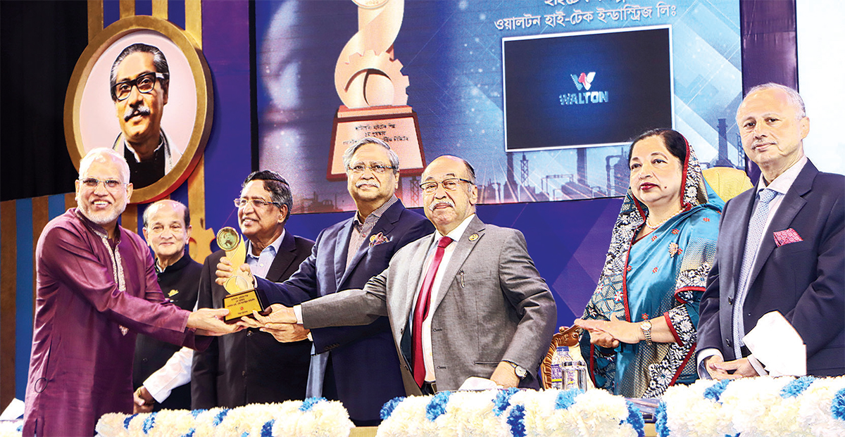 হাই-টেক শিল্প ক্যাটাগরিতে ‘বঙ্গবন্ধু শেখ মুজিব শিল্প পুরস্কার ২০২২’ এর প্রথম পুরস্কার পেলো দেশের গ্লোবাল ইলেকট্রনিক্স জায়ান্ট ওয়ালটন। বার্ষিক টার্নওভার, আমদানি বিকল্প পণ্য উৎপাদন, স্থানীয় কাঁচামাল ব্যবহার, কর্মসংস্থান বৃদ্ধি, সামাজিক দায়িত্ব পালন, নিষ্কন্টক ভূমি ও ভূমির পরিকল্পিত এবং দক্ষ ব্যবহার, পরিবেশ সংরক্ষণ প্রভৃতি ক্ষেত্রে বিশেষ অবদানের স্বীকৃতিস্বরূপ ওয়ালটনকে এই পুরস্কার প্রদান করে শিল্প মন্ত্রণালয়। গতকাল মঙ্গলবার রাজধানীর ওসমানী স্মৃতি মিলনায়নে শিল্প মন্ত্রণালয় কর্তৃক আয়োজিত এক অনুষ্ঠানে ছয়টি ক্যাটাগরিতে ওয়ালটনসহ মোট ১২টি প্রতিষ্ঠানকে ‘বঙ্গবন্ধু শেখ মুজিব শিল্প পুরস্কার ২০২২’ প্রদান করা হয়। অনুষ্ঠানে প্রধান অতিথি রাষ্ট্রপতি মো. সাহাবুদ্দিনের কাছ থেকে হাই-টেক ক্যাটাগরিতে প্রথম পুরস্কার স্বর্ণখচিত ক্রেস্ট ও সম্মাননাপত্র গ্রহণ করেন ওয়ালটন হাই-টেক ইন্ডাস্ট্রিজ পিএলসি’র ভাইস-চেয়ারম্যান এসএম শামসুল আলম। এ সময় বিশেষ অতিথি হিসেবে উপস্থিত ছিলেন কৃষিমন্ত্রী ড. মো. আব্দুর রাজ্জাক, শিল্প প্রতিমন্ত্রী কামাল আহমেদ মজুমদার এবং এফবিসিসিআই সভাপতি মো. মাহবুবুল আলম।
